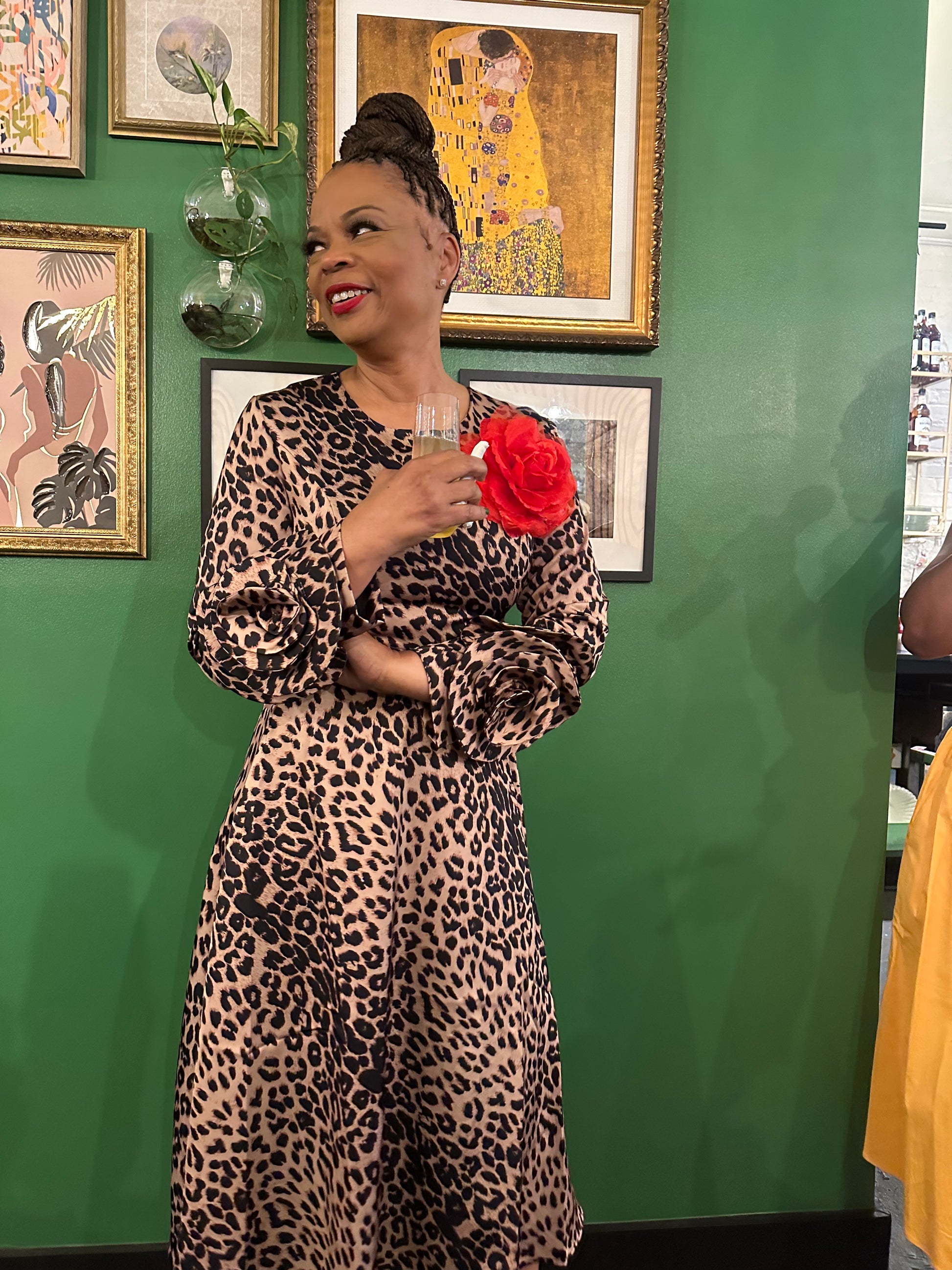 Make a bold statement in our Leopard Elegance Midi Dress. Featuring a chic floral detail on the sleeve, sleek zipper-back closure, and a figure-flattering fit, it blends wild confidence with refined style.